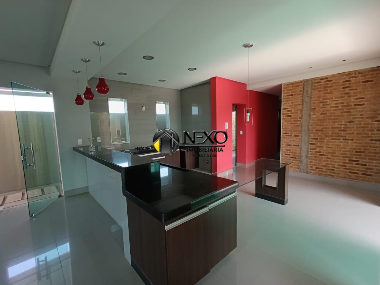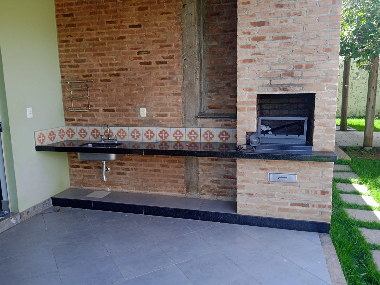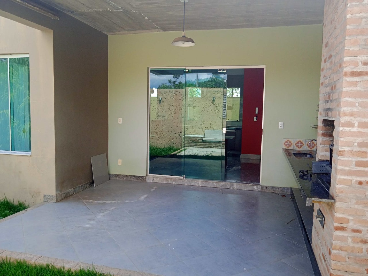 Composta por sala de estar, cozinha com armários planejados, despensa, área de serviço fechada com acesso a garagem e fundos da casa, banheiro social, três quartos, sendo um suíte, área esterna com pomar, paisagismo, garagem coberta para dois automóveis.
